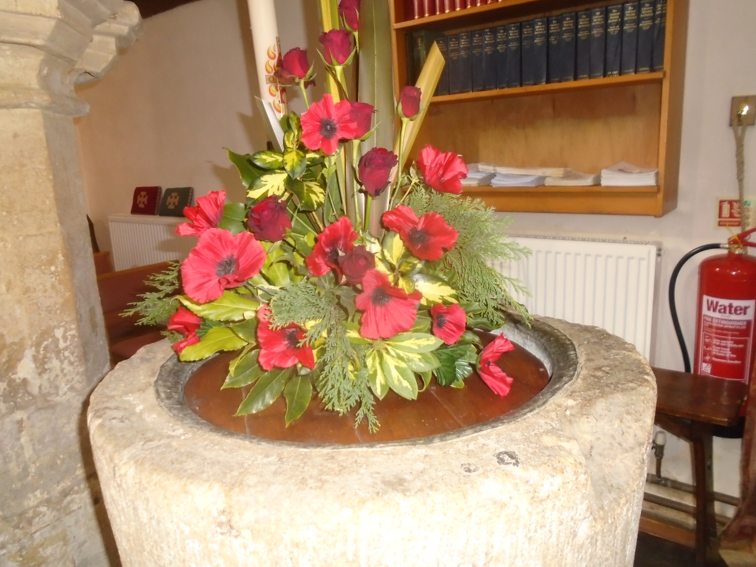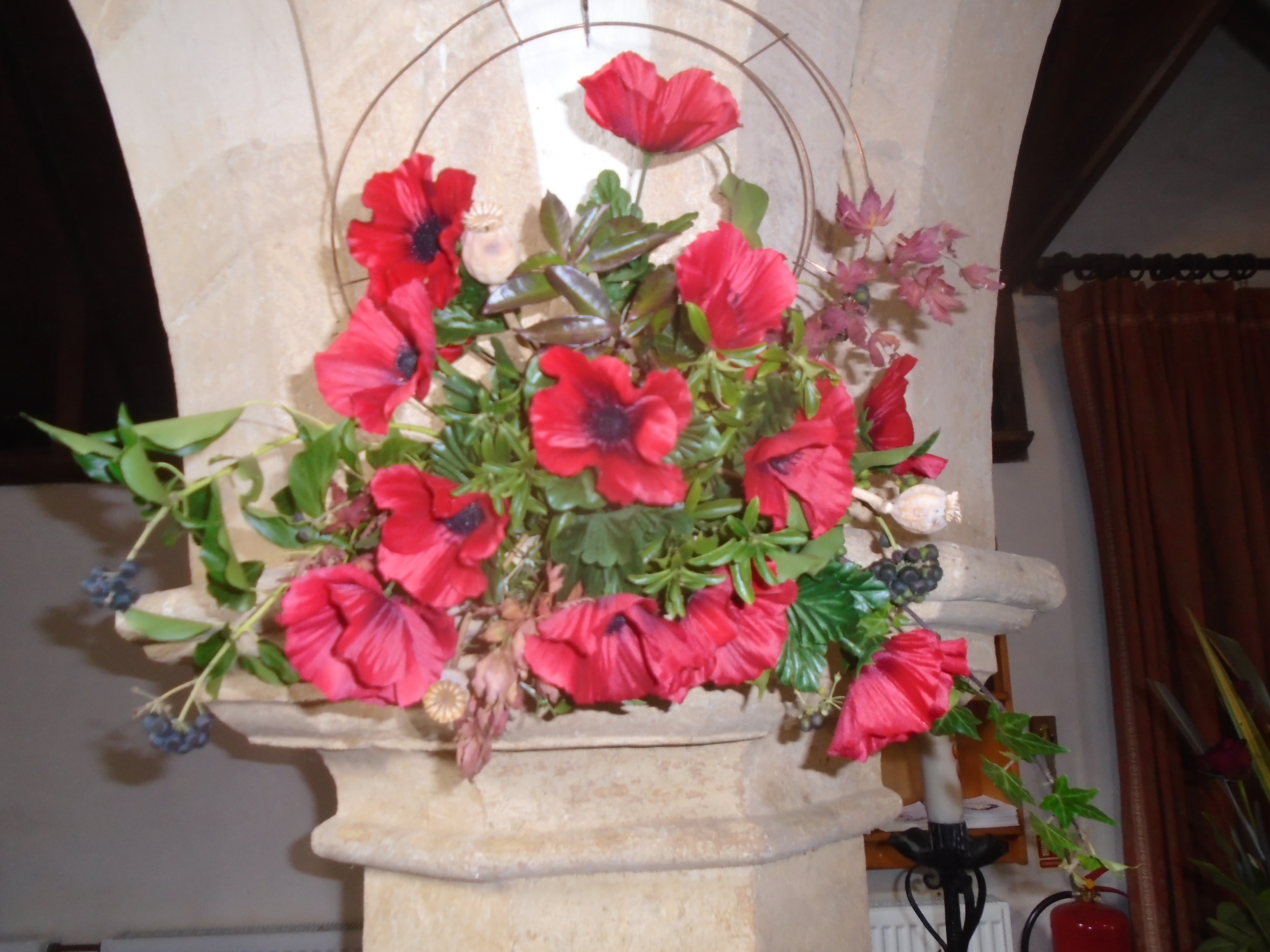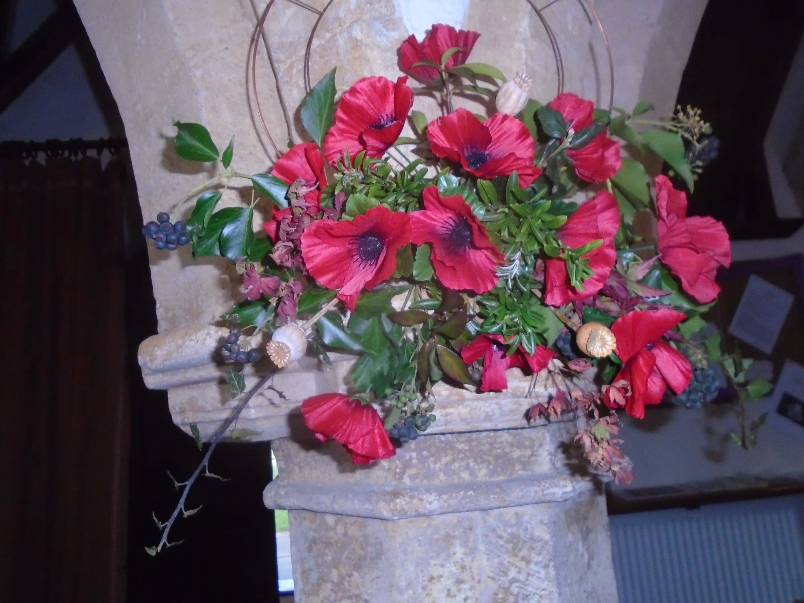 Remembrance Day Flowers in St Peter's Church, Willersey November 2025. |